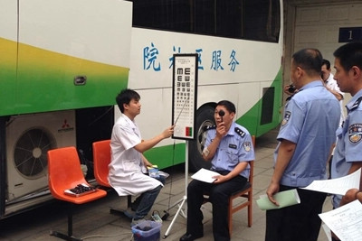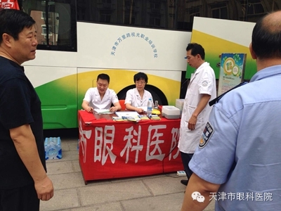 2014年6月6日是第19个全国“爱眼日”,天津市眼科医院郭宝智副院长亲自带领社区直通车,到公安局南开分局,为长期奋战在治安维稳一线的广大公安干警义诊检查,宣传爱眼知识,送去温暖与关怀。