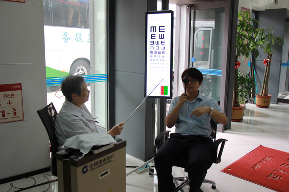 2014.6.19眼科医院社区服务直通车来到梅江建设银行为当地职工和居民义诊117人,验光89人,发药9支。