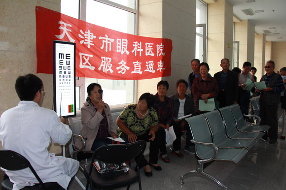 2014年9月22日,天津市眼科医院来到蓟县财政局,为当地职工义诊167人、验光110人、发药47支、修理清洗眼镜37副。