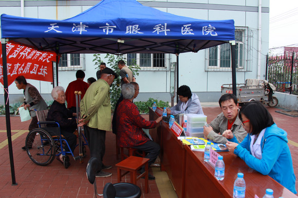 2014年9月24日,天津市眼科医院社区服务直通车来到静大丰堆卫生院,为当地居民义诊61人、验光43人、发药24支、修理清洗眼睛24副。