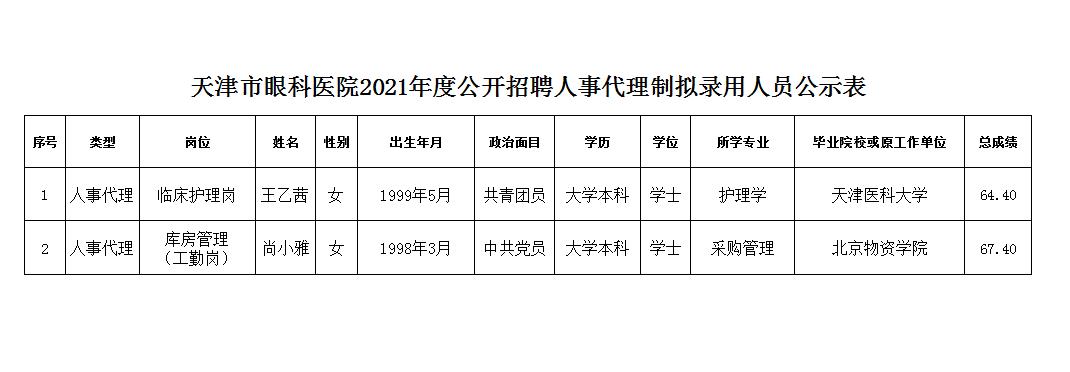 首页>>天津市眼科医院公开招聘人事代理制第三批次拟录用人员公示