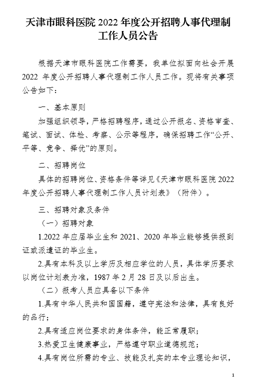 首页>>天津市眼科医院2022年度公开招聘人事代理制工作人员公告